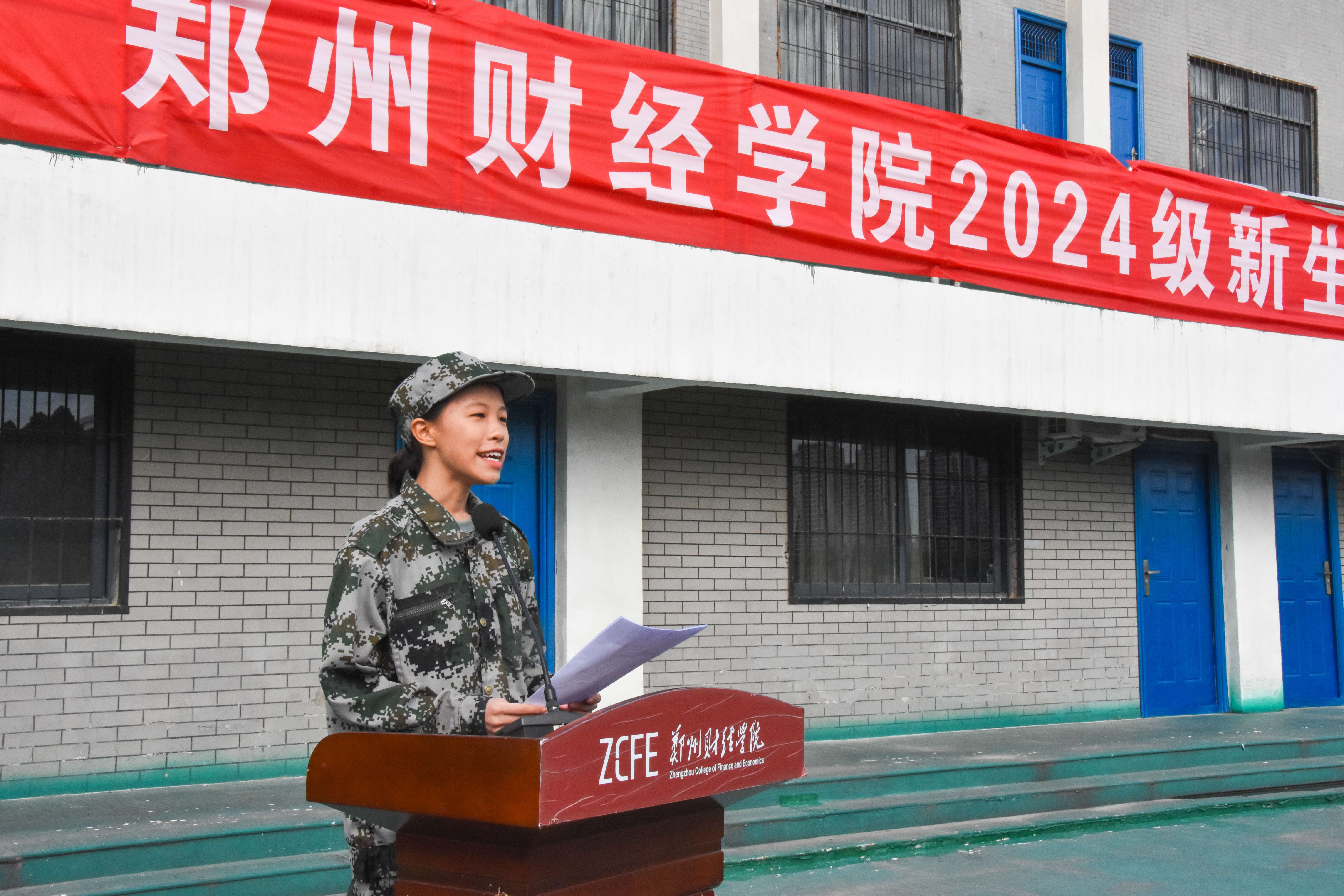 会计学院2024级会计学本科1班黄鑫作为新生代表发言,她首先代表全体新生向各位领导、老师、教官表示最衷心的感谢,生动地讲述了军训的收获和感悟,并鼓励大家带着军训赋予的信心和力量,积极投身于建设社会主义现代化强国的伟大事业中,以更坚定的信念、更昂扬的斗志,以青春为笔,以汗水为墨,用实际行动践行“强国有我”的青春誓言,向时代交出一份合格的答卷。
